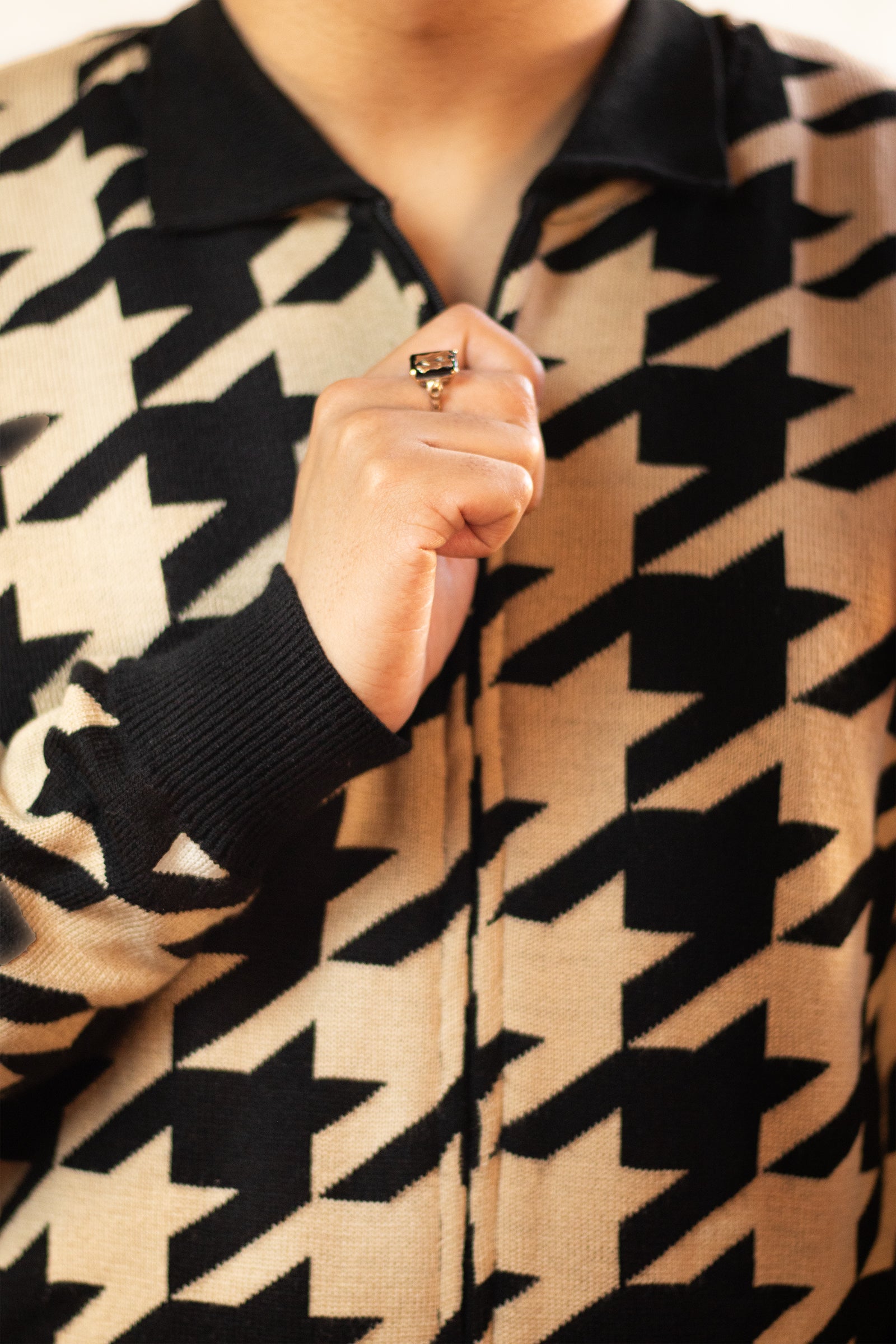 The GOD IS GOOD Houndstooth golf shirt is designed to make you stand out wherever you go. The golf shirt can be zipped up for a formal look if you are heading to the office and zipped down with a t-shirt under to show off your casual side during the weekend. The garment is completed with a gentle rib-knit golf collar, waist hem and cuffs providing the perfect fit. Think casual days at work, weekends out, family functions, dinner dates.