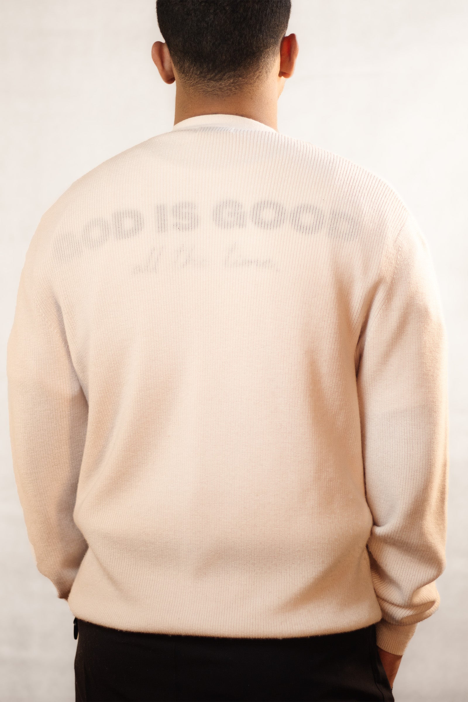 The GOD IS GOOD cardigan is knitted in medium-weight 100% Merino wool designed to make you look sophisticated and stay comfortable all day. Perfect for meetings, office days, presentations or church. The classic cream shade makes it easy to style with any pants. Button up to go formal during the week and button down to stand out during the weekend. Our cardigan is off the highest quality and will last a life time.